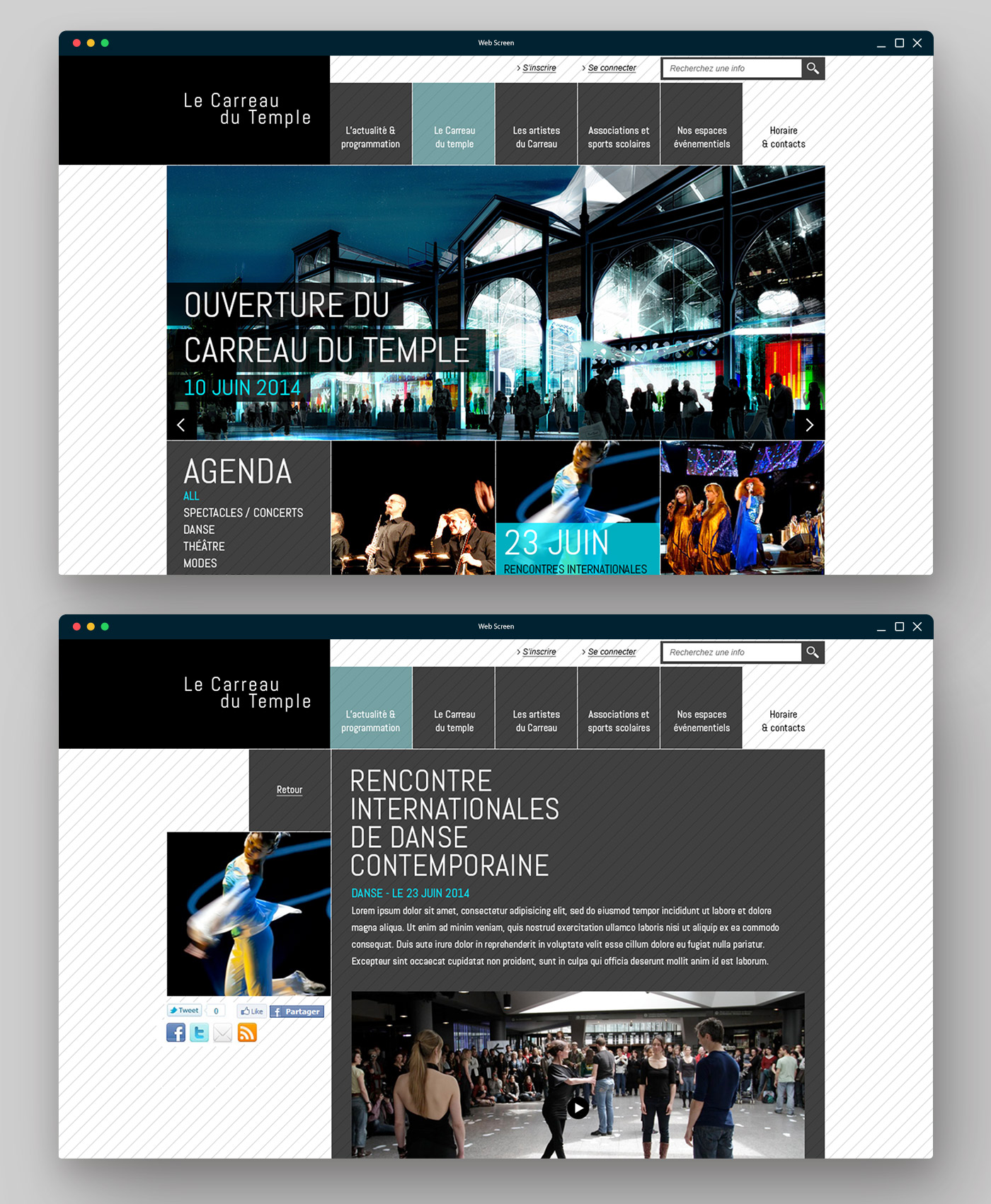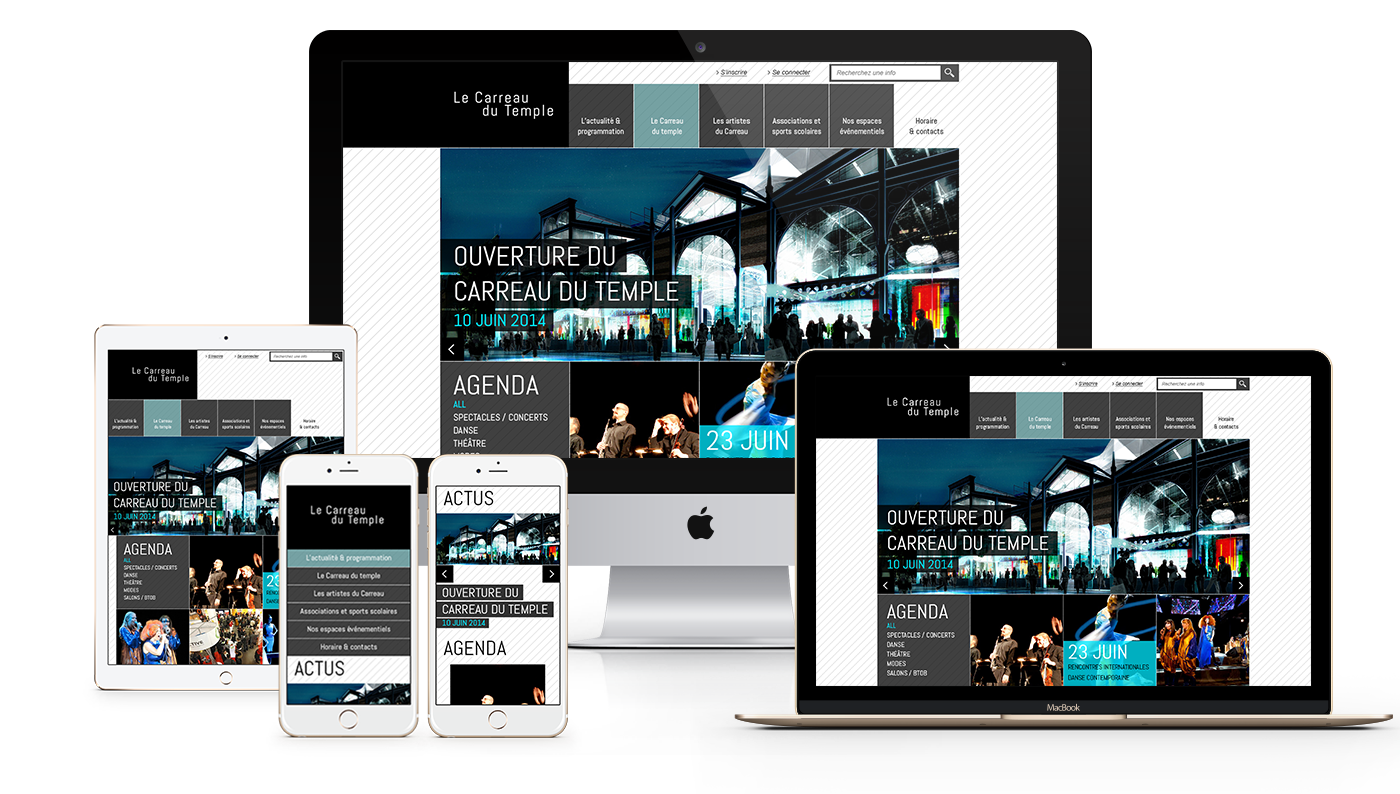 En collaboration avec une agence de communication et dans le cadre d’un appel d’offre, j’ai pu proposer mes services de graphiste indépendant pour réaliser le nouveau site web de ce nouveau et magnifique lieu culturel à Paris Le Carreau du Temple.